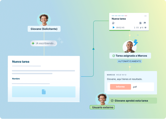 In a few clicks, you can create automations yourself that distribute the tasks among the team, create deadlines, request approvals. You define the process, Runrun.it runs it.